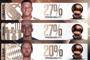2026年金球奖获奖概率:姆巴佩、亚马尔并列居首,凯恩位列第三体育资讯02月04日讯相关机构近期更新了2026年金球奖的获奖概率预测,目前姆巴佩与亚马尔并列领跑,两人获奖概率均为27%,凯恩和哈兰德则紧随其后。2026年金球奖获奖概率:1、姆巴佩、亚马尔:27%2