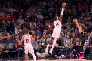 这哪像有伤病的人!波杰姆斯基反击追身三分 马威扑防血帽扇出界GIF-马威飞身血帽波杰姆斯基的三分