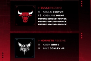 公牛官宣:送出科比·怀特和康利 换来塞克斯顿&吉昂和3个次轮签体育资讯2月5日讯芝加哥公牛官方宣布,球队和黄蜂之间的交易已经正式完成。这笔交易中,公牛送出科比·怀特和康利,换来黄蜂的塞克斯顿、乌斯曼·吉昂和3个次轮签(一个29年,两个31年)。