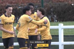 狼队U21再进一球3-1领先,恩索·冈萨雷斯角球后点头球破门体育资讯02月07日讯英超U21联赛,狼队U21vs伊普斯维奇U21。比赛第28分钟,狼队U21再度破门3-1领先。角球中徐彬被安排在前点争抢,恩索·冈萨雷斯后点头球破门。、徐彬和队友庆祝进球↓
