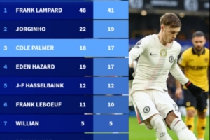 切尔西英超点射进球榜:兰帕德41球居首,帕尔默18罚17中第三体育资讯2月8日讯在本轮英超切尔西3-1击败狼队的比赛中,帕尔默点射双响,德转也盘点了切尔西球员在英超点球进球榜,帕尔默第三,具体如下:1、兰帕德48罚41中2、若日尼奥22罚19中3、帕尔默18罚17