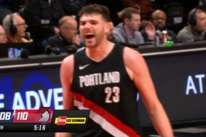 文班在27分钟的时间里,投篮14中6,三分球6中1,罚球4中3,拿到16分11篮板1助攻3盖帽的数据。