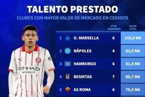 俱乐部租借加盟球员身价:马赛1.43亿欧居首,那不勒斯、汉堡前三体育资讯2月10日讯德国转会市场统计了各俱乐部租借加盟球员的身价,并列出榜单,马赛居首,那不勒斯、汉堡二三位。各俱乐部租借加盟球员身价榜:马赛(6人)——1.43亿欧那不勒斯(4人)——8300万欧汉堡